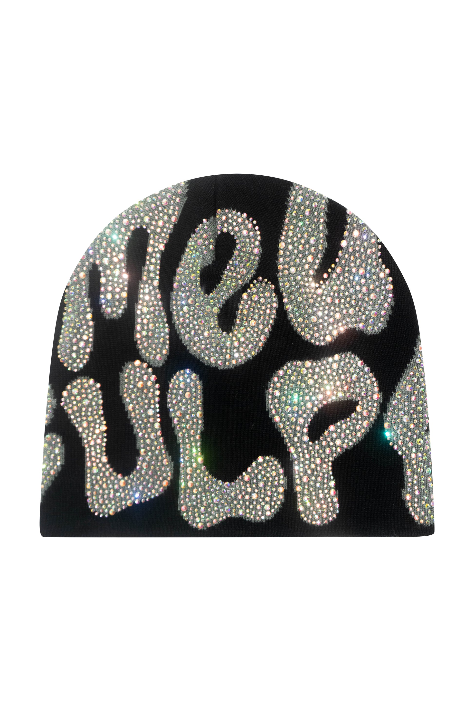 This cotton beanie is adorned with a contrasting "Mea Culpa" design, featuring rhinestone detailing for a touch of sparkle. With its warm and comfortable fit, this beanie effortlessly complements other styles from the collection for a laid-back, relaxed look. Perfect for pairing with cozy and casual outfits, it adds an extra element of style to any ensemble.