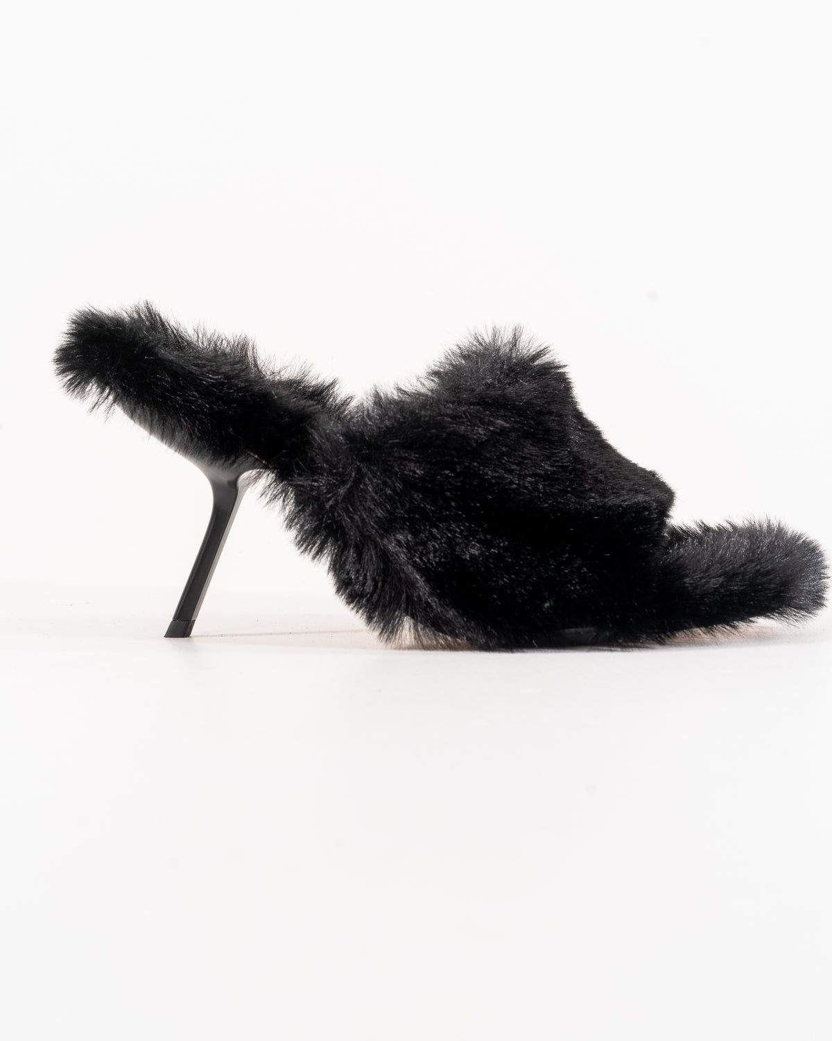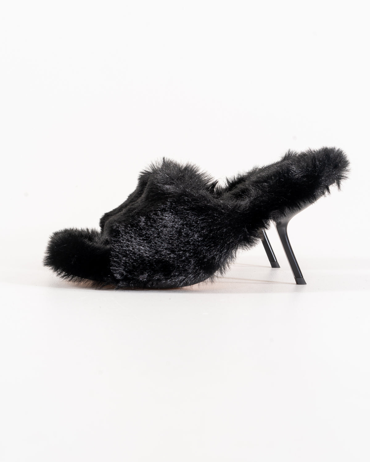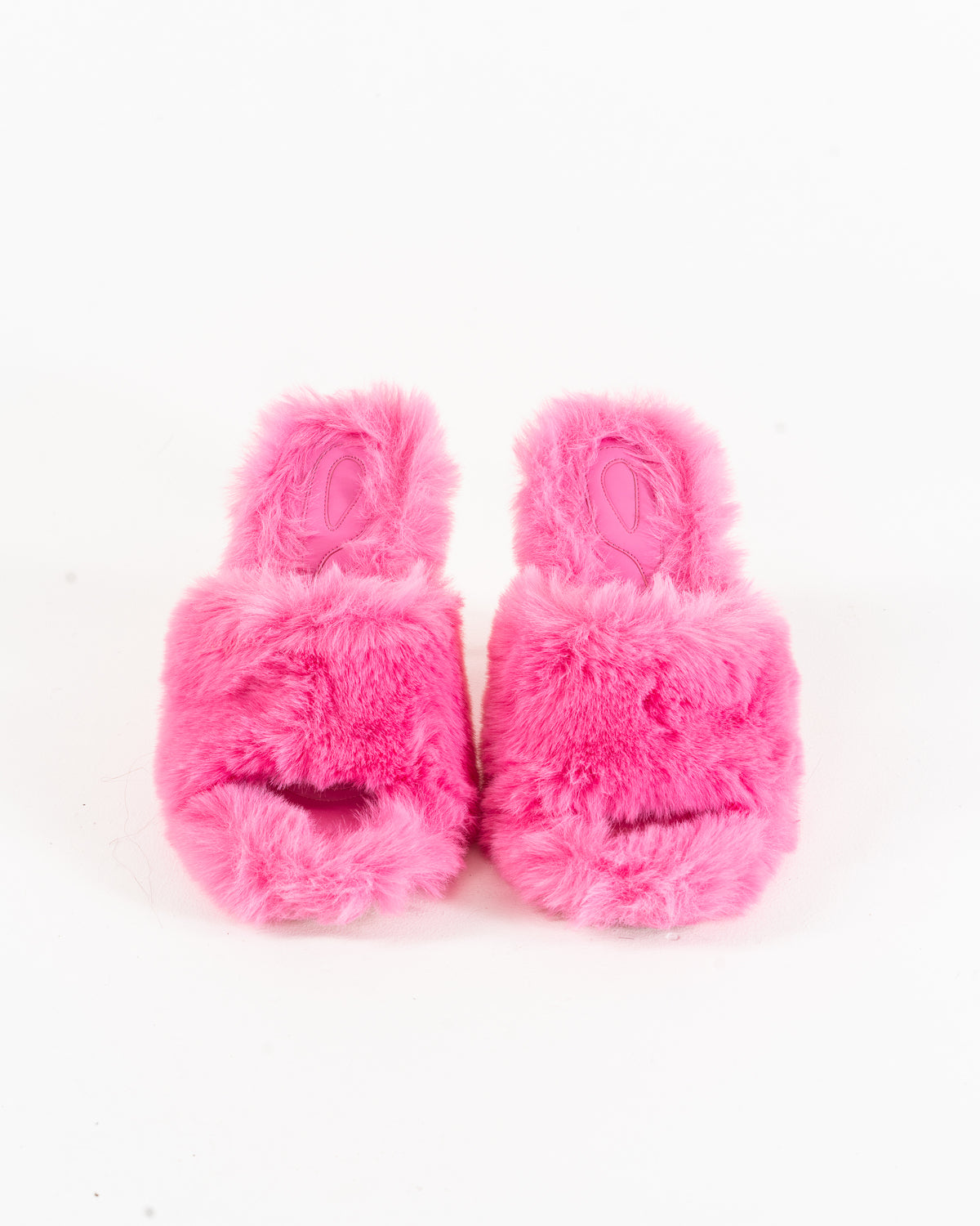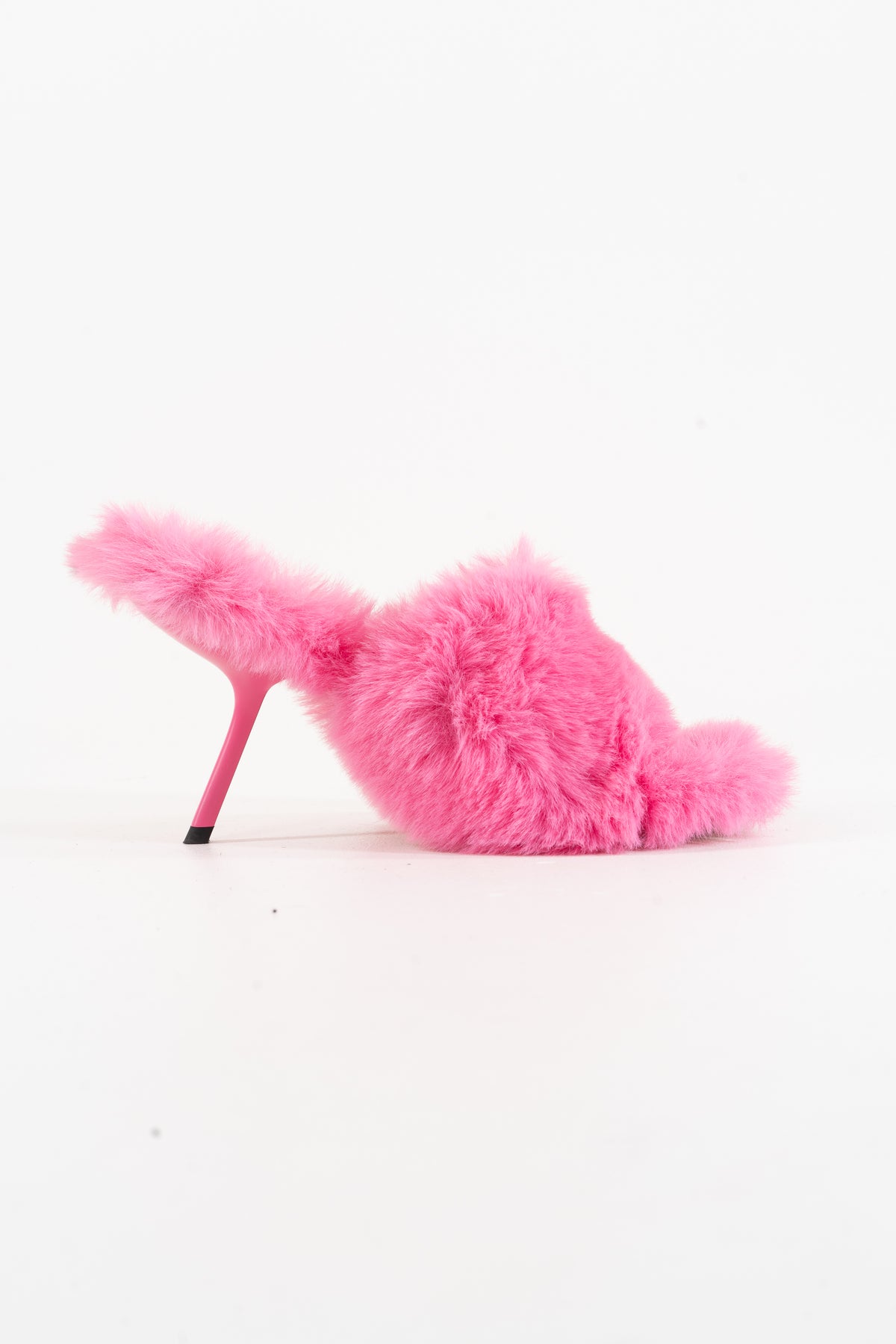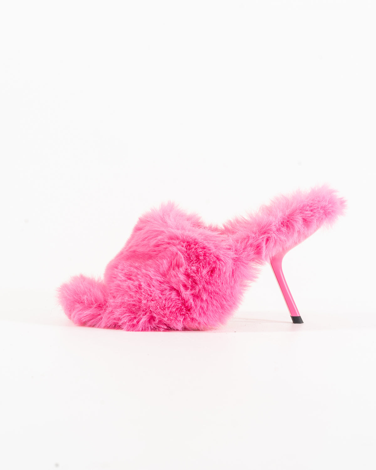 Step into playful luxury with our signature furry heels. Wrapped in plush pink faux fur, they bring a touch of cozy glamour to any outfit. Perfect for nights out or just lounging in style.