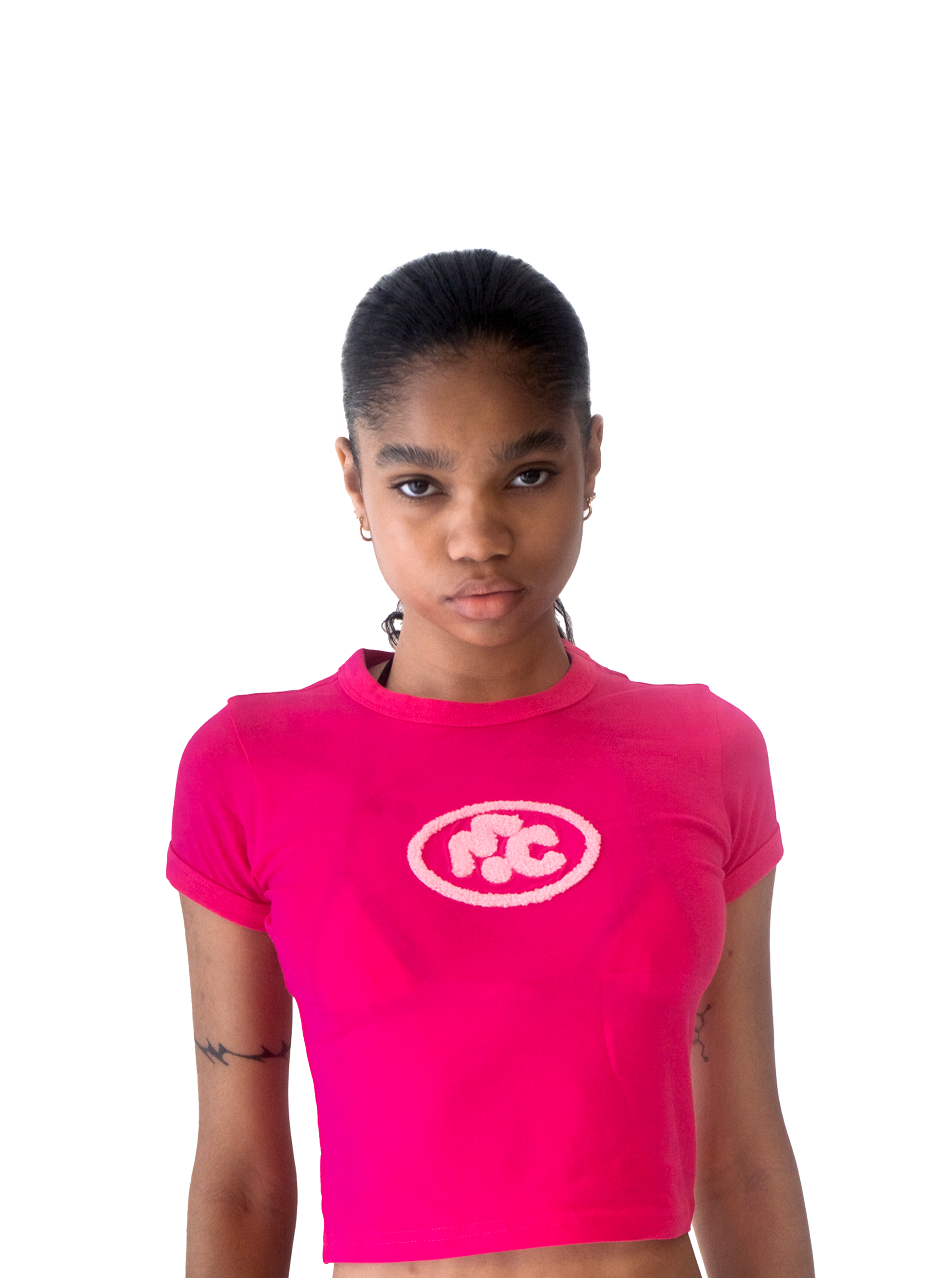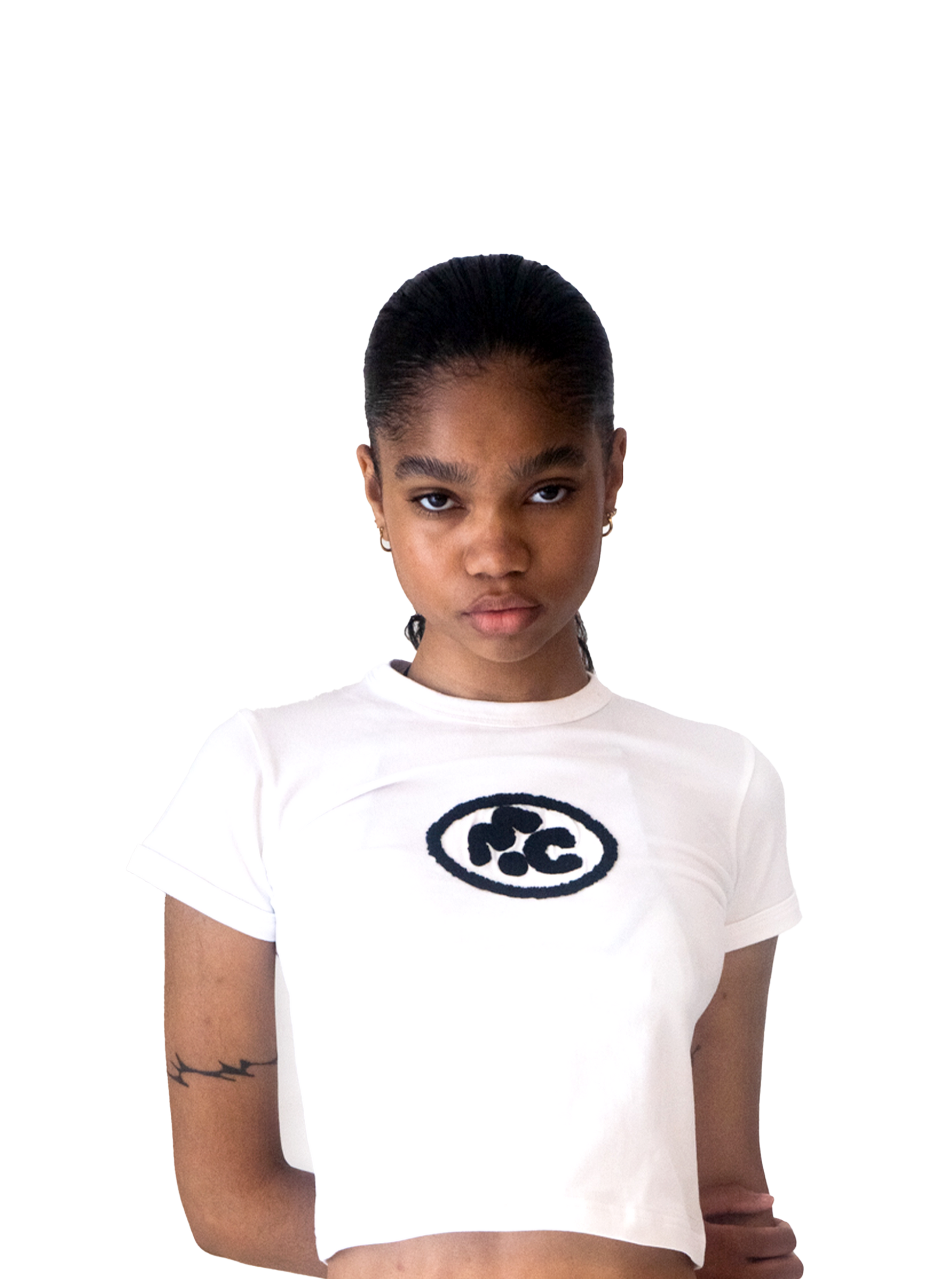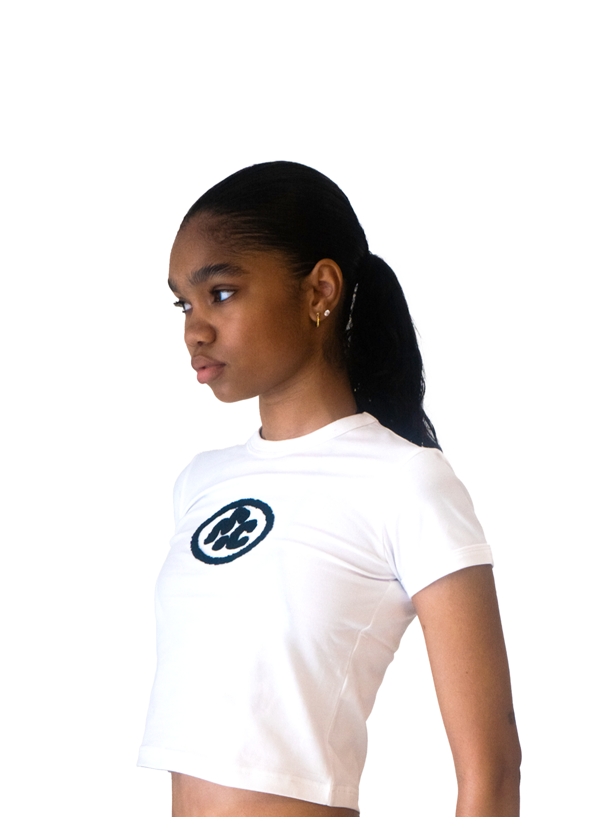 Elevate your style with our Hi Baby Tee. With our signature "MC" chenille logo patch on front, this fitted baby tee merges playfulness and comfort.