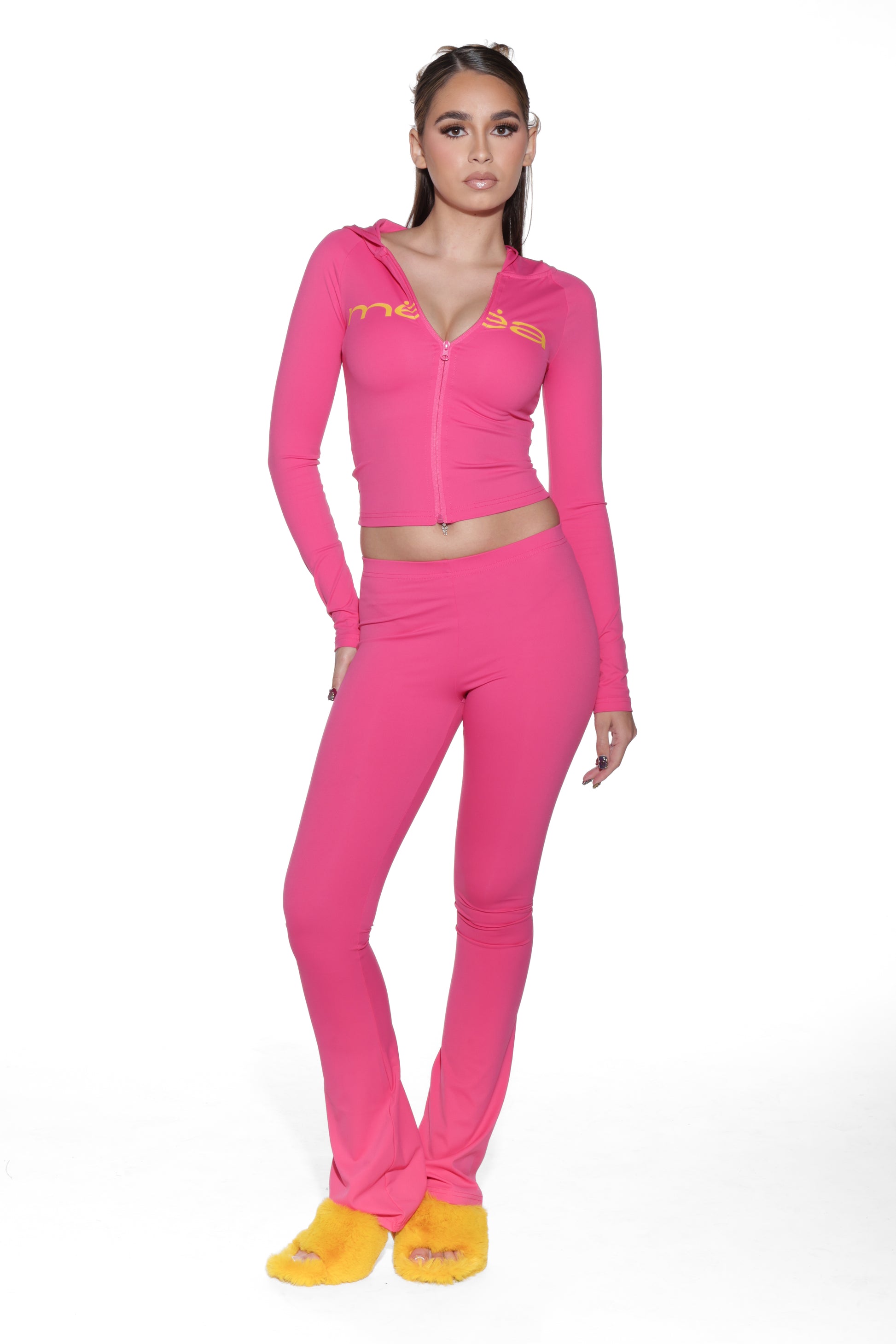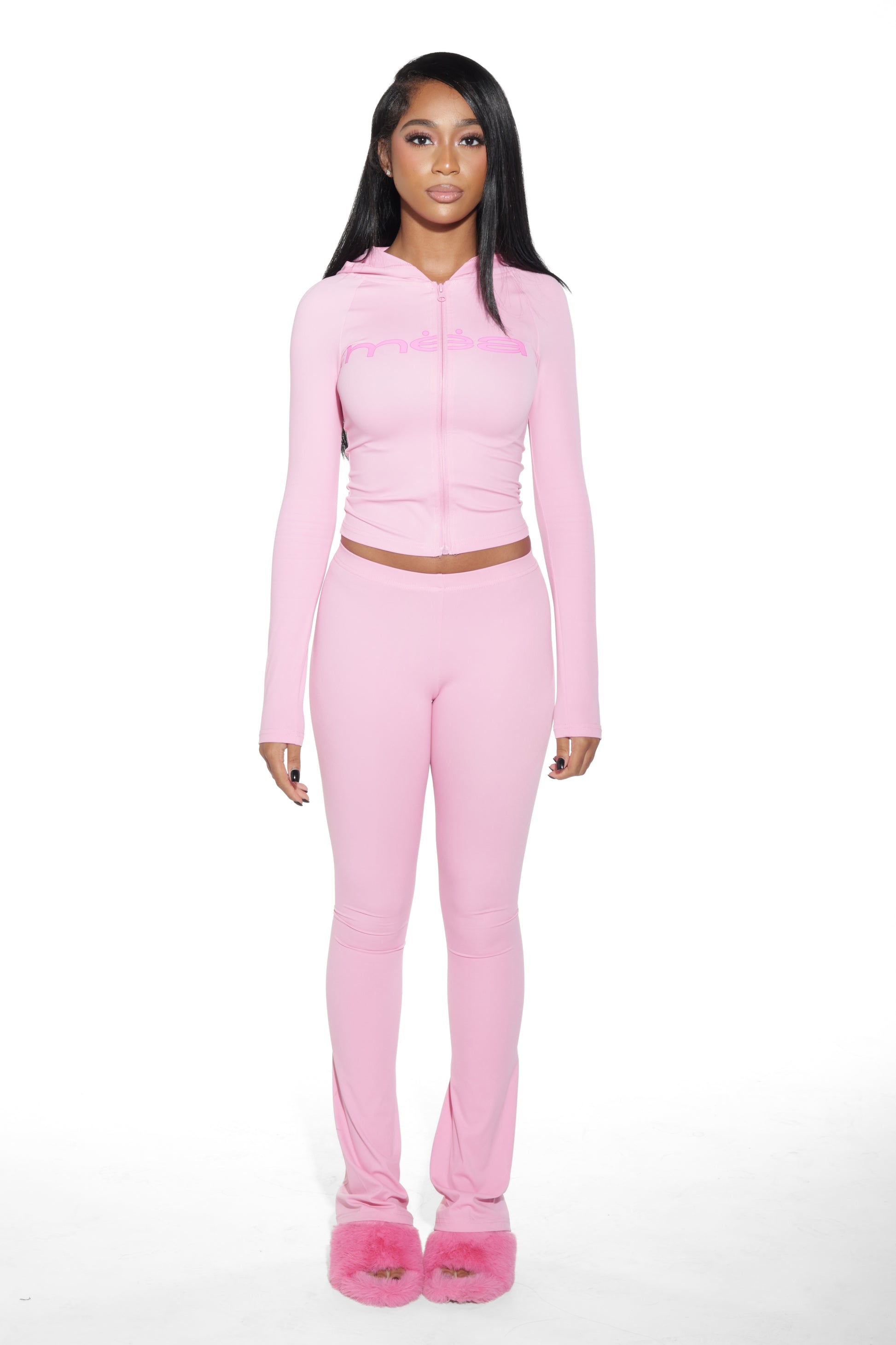 Get cute and cozy with our “Mea” Cropped Zip-Up Hoodie! This fitted, long-sleeve zip up is perfect for layering, or paired with the matching bottoms.