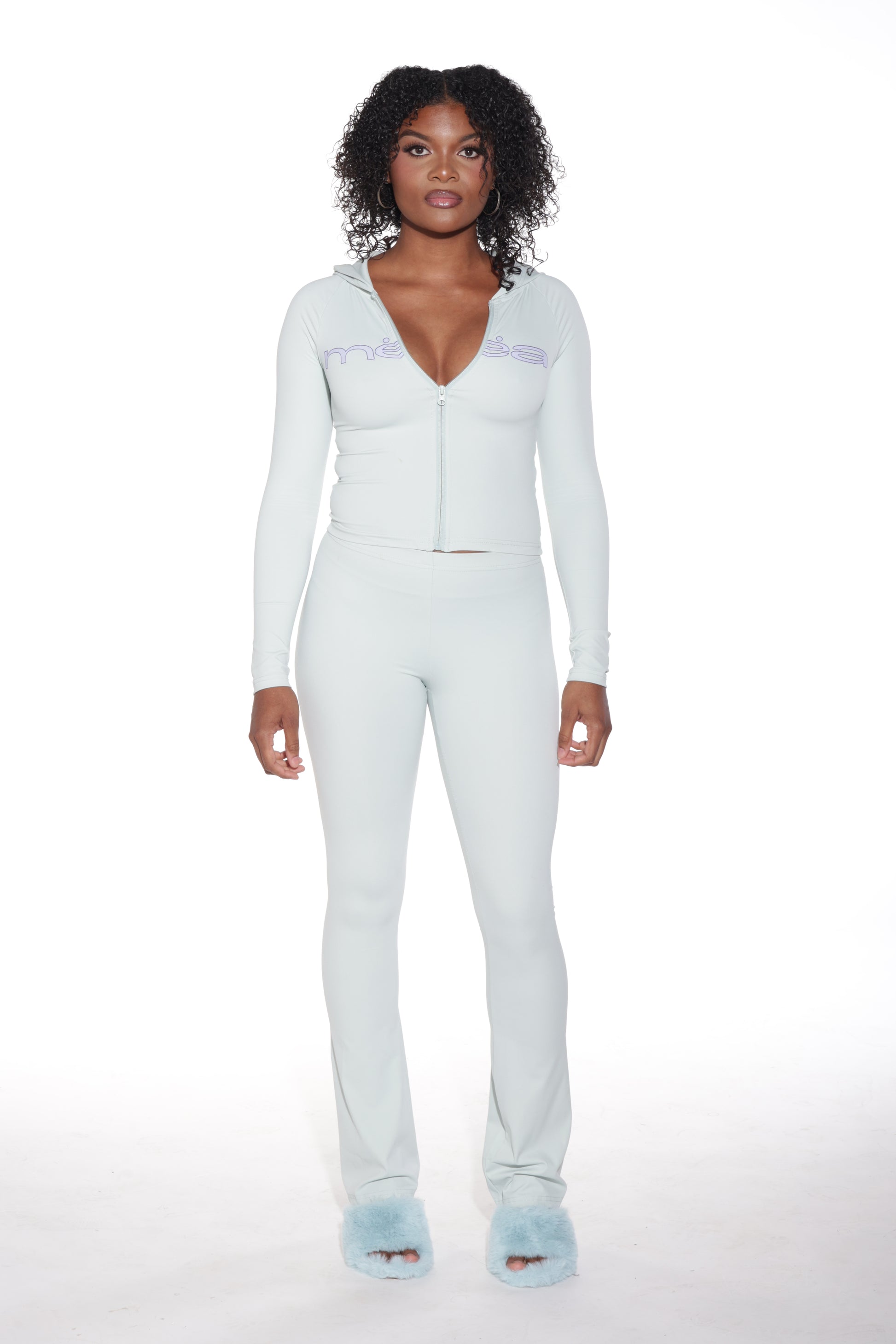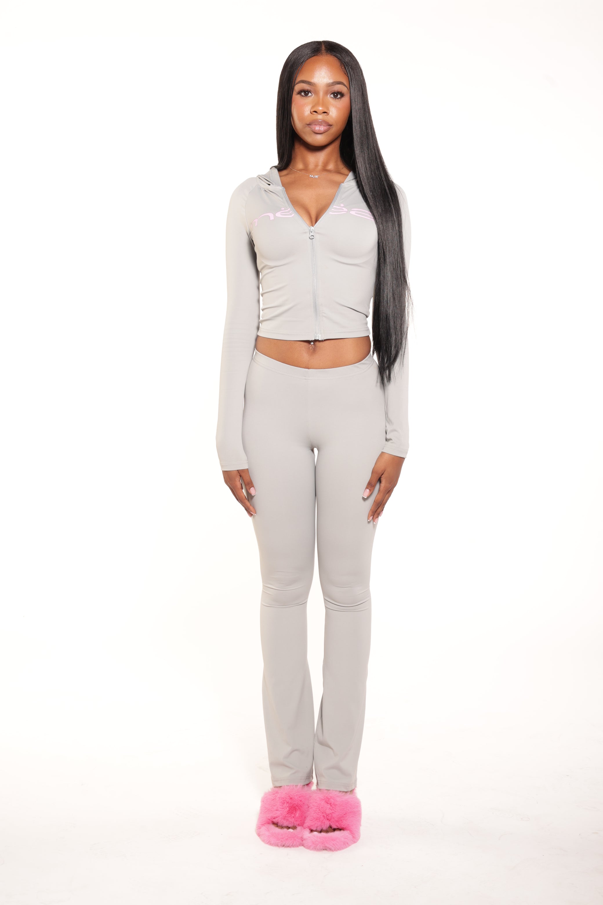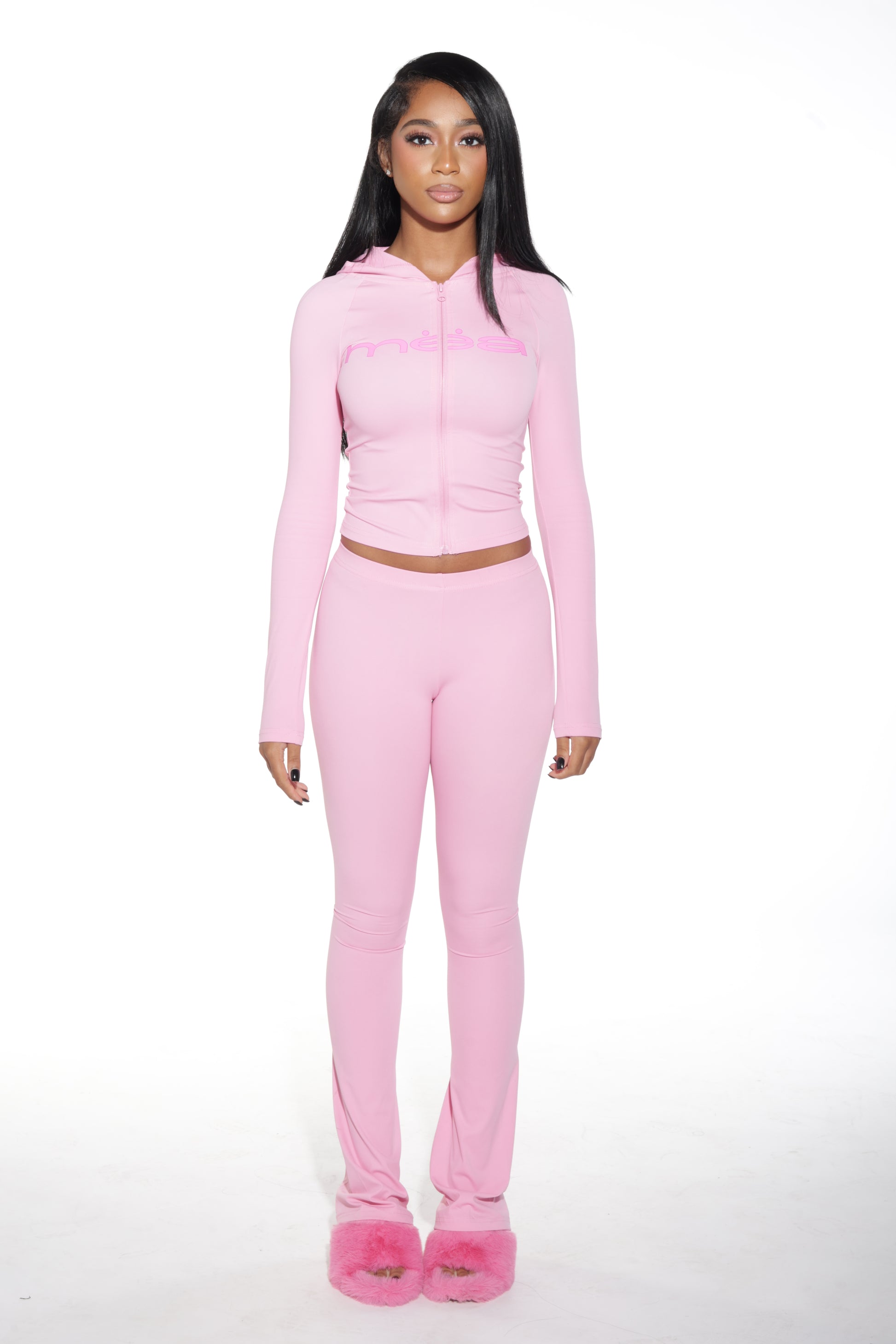 This fitted, full-length set features a soft, sculpting zip-up top and matching bottoms designed for all-day comfort and effortless movement. Perfect for lounging, layering, or stepping out in style.
