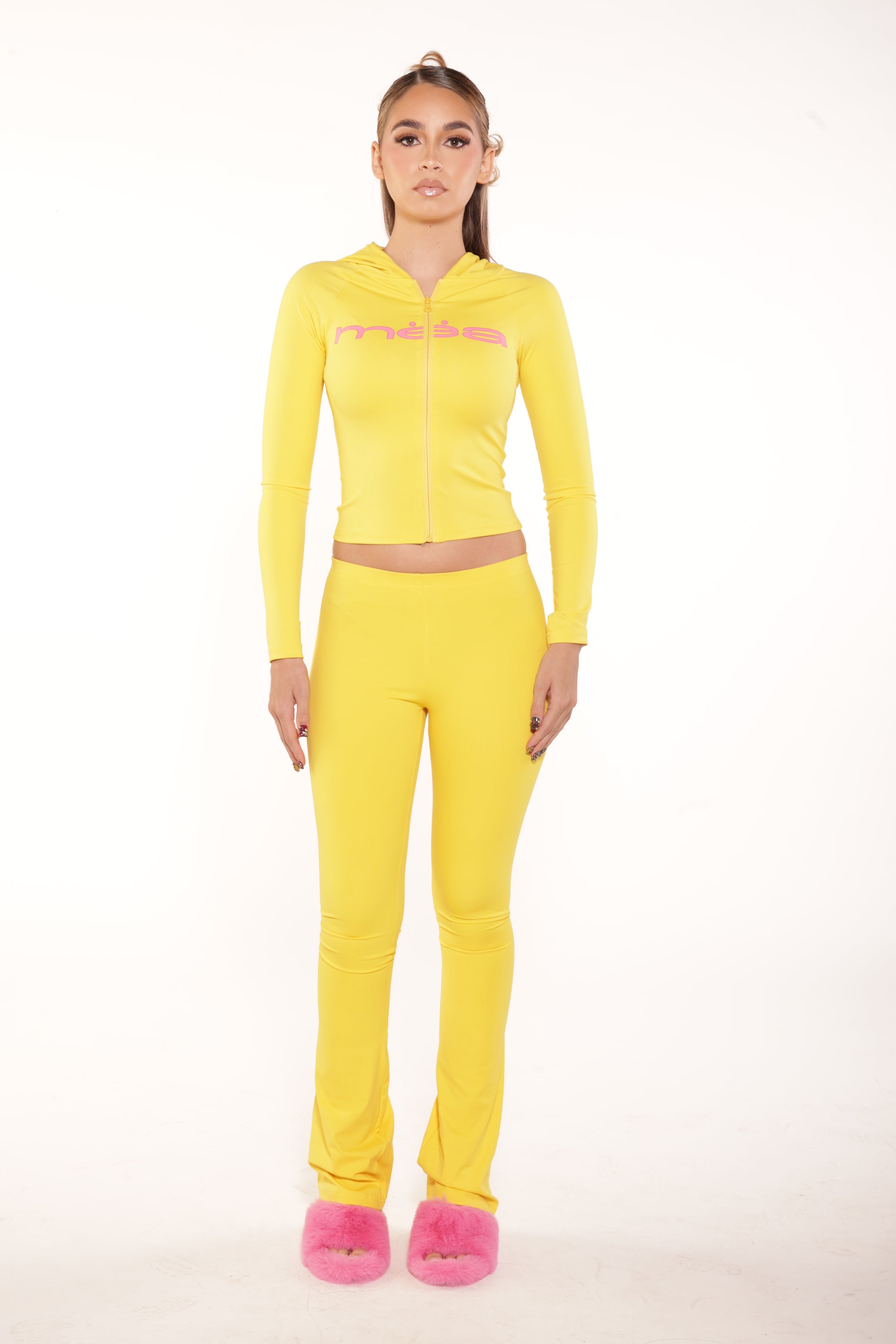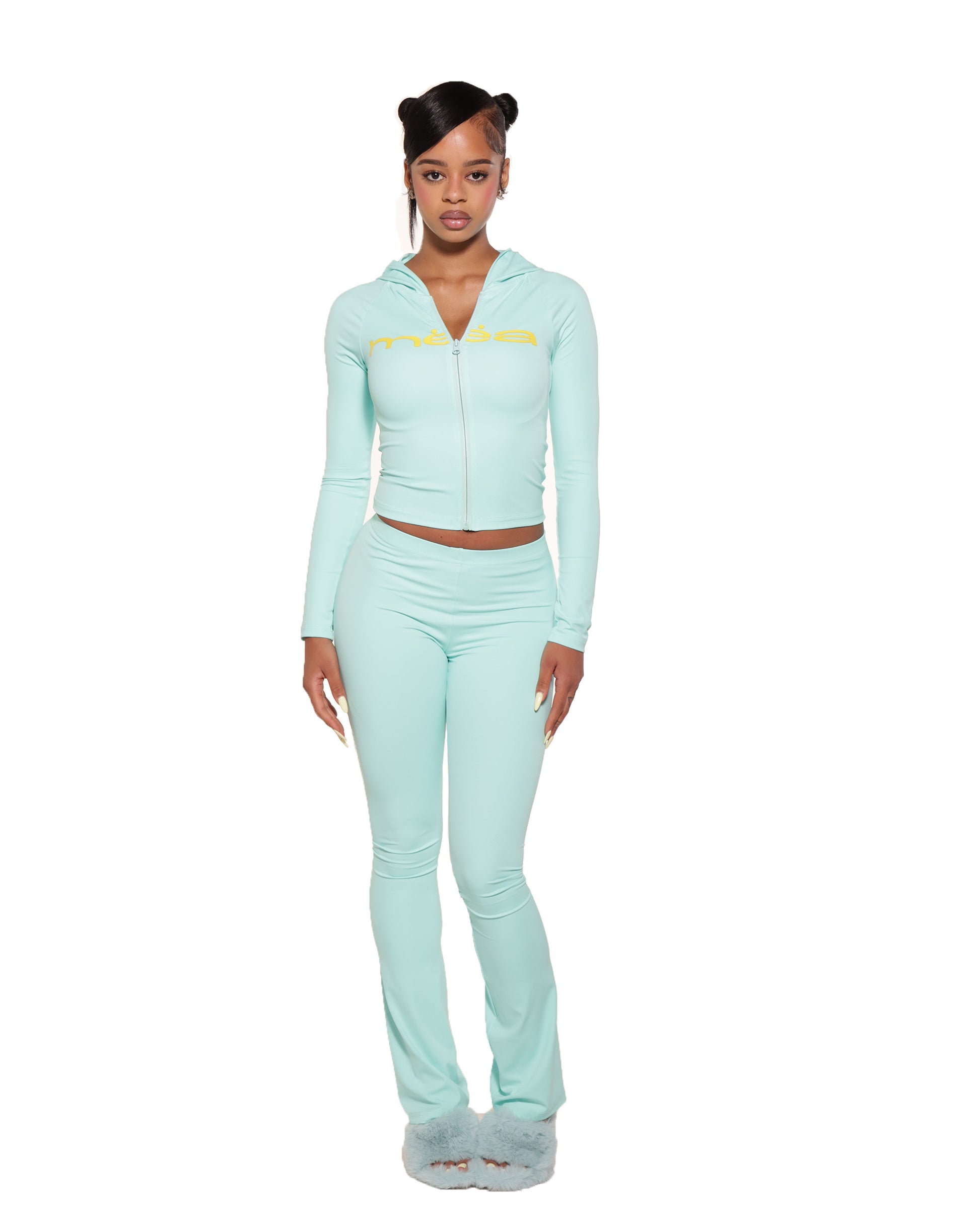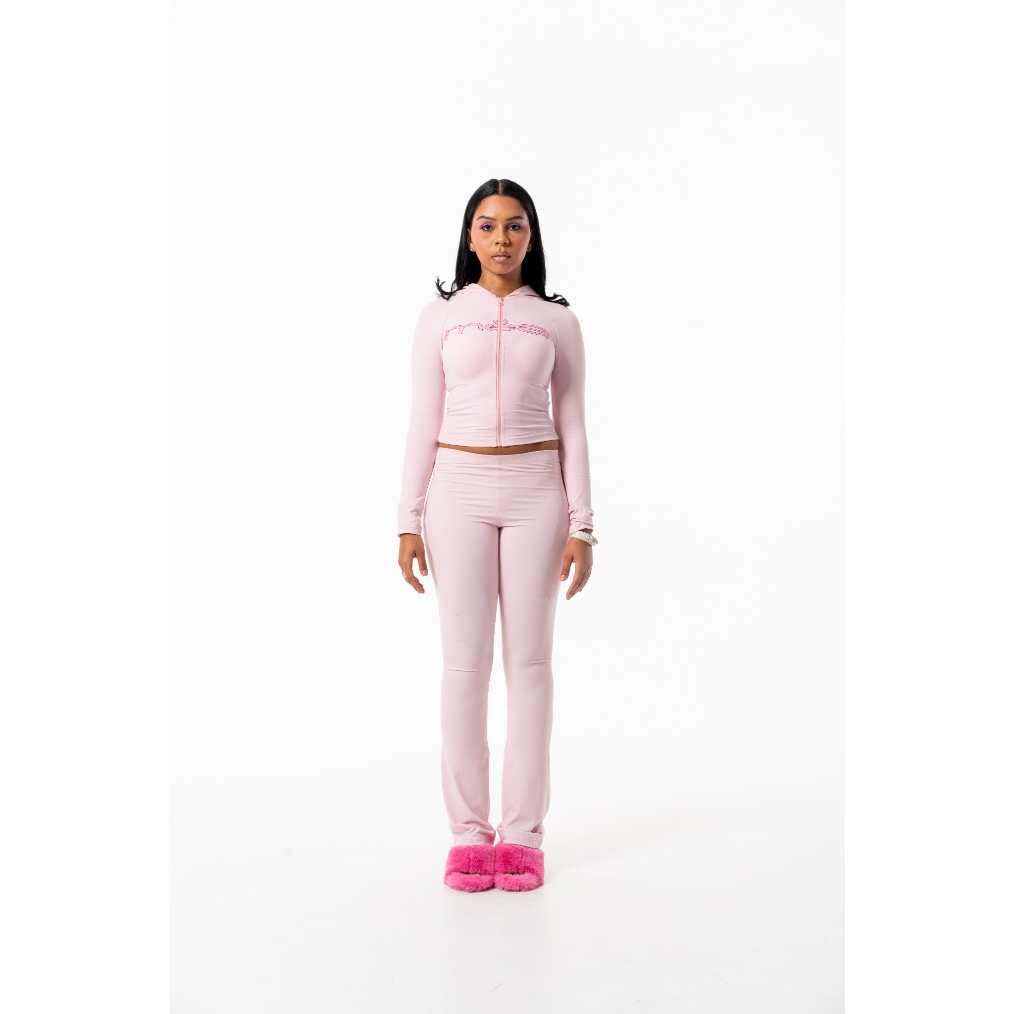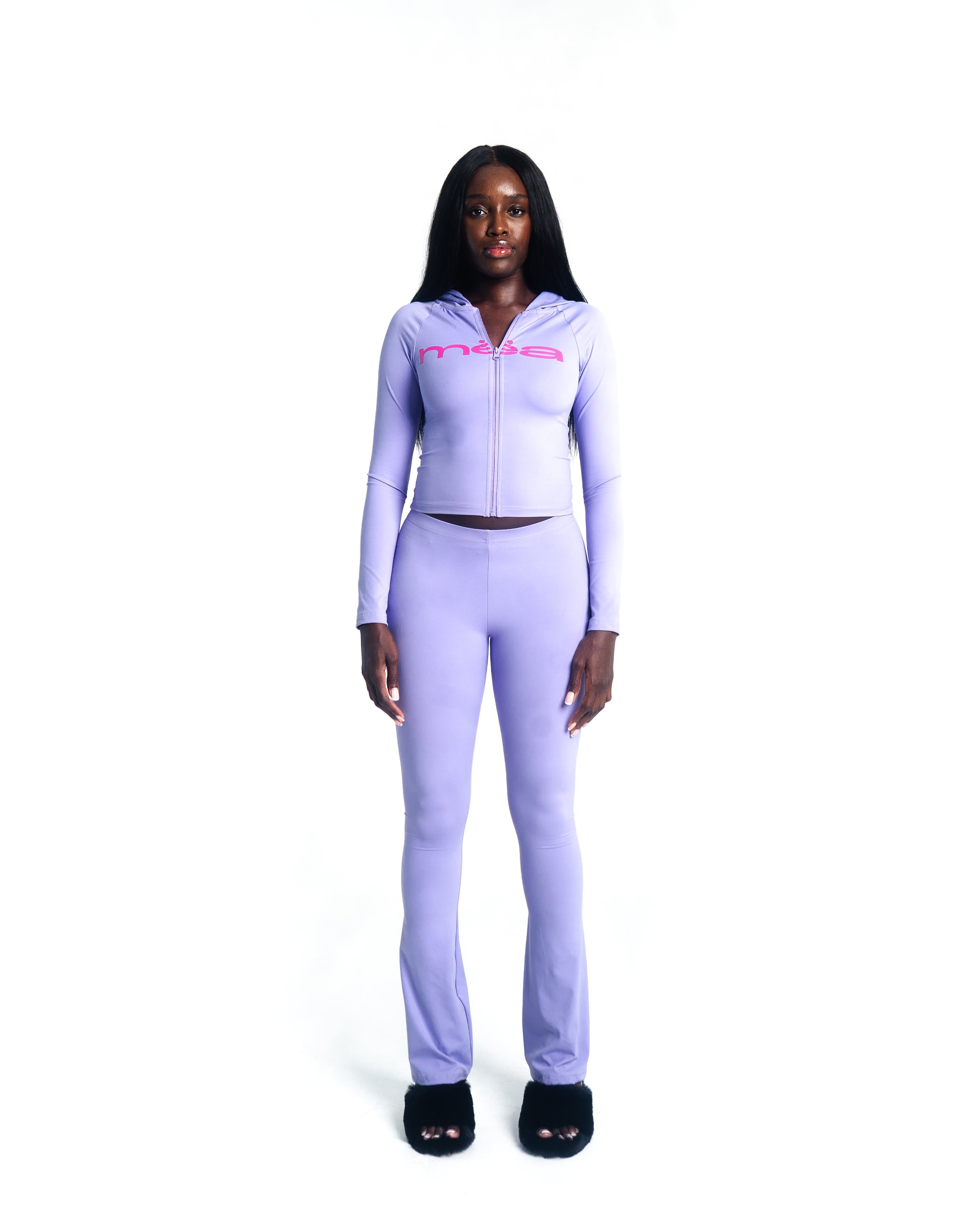 This fitted, full-length set features a soft, sculpting zip-up top and matching bottoms designed for all-day comfort and effortless movement. Perfect for lounging, layering, or stepping out in style.